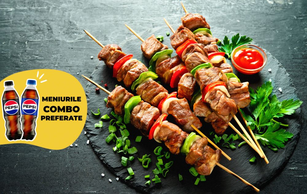 piept pui-100g; chiflă burger-90g; sos burger-40g; cheddar-25g; sos umami-20g; sos barbeque-20g; roșii-20g; castraveți murați-20g; ceapă roșie; salată iceberg+ GRATIS Doza PEPSI BLACK