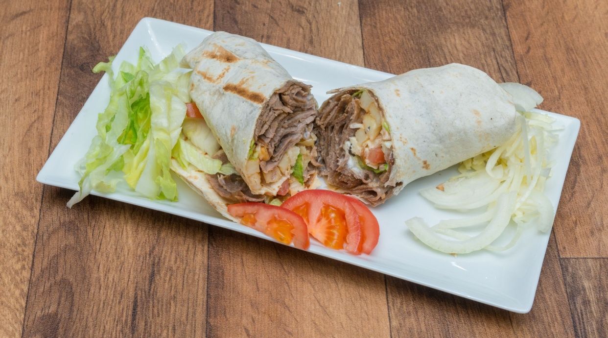 Carne vitel, cartofi prăjiți, salată verde, salată de varză, ceapă roșie, roșii, castraveți murați, sos usturoi, sos krass, sos ketchup, sos tzatziki, sos sfecla, lipie - 1kg