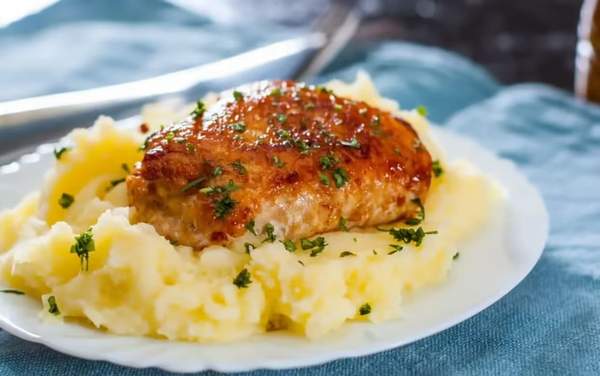 Piept de pui cu sos gorgonzola și piure de cartofi ( 400 gr )