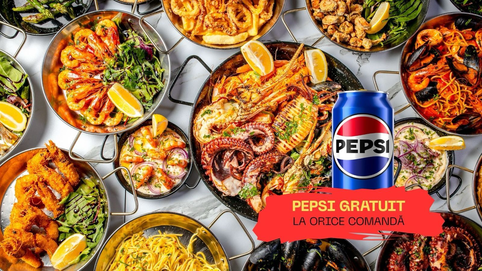 +1 Sticlă de vin cadou din partea casei.Dorada 350g, Creveti 250g, Caracatita 180g, Scoici 180g, Calamar 180g, Lamaie 50g, Ulei de masline 10ml. - 1100g