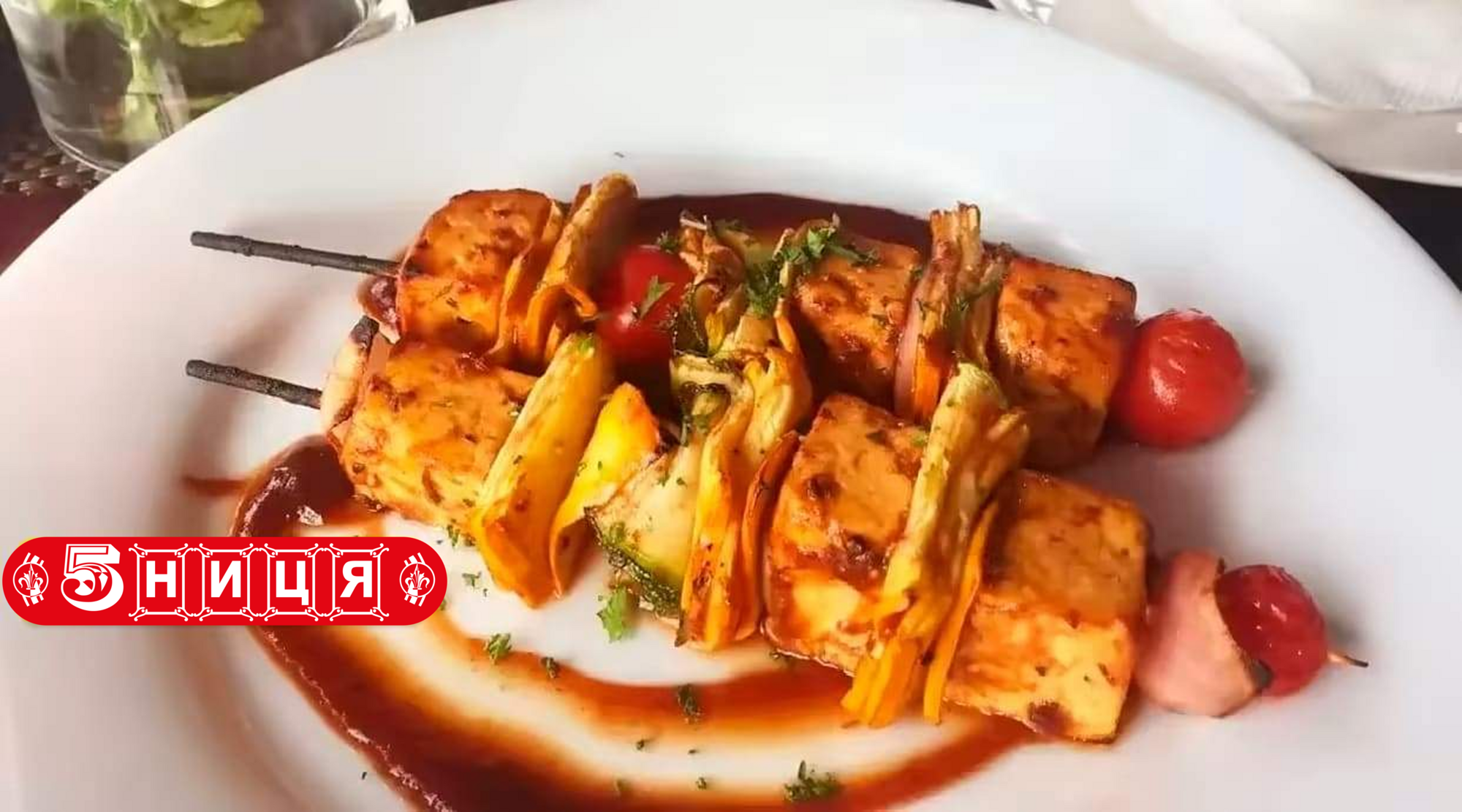 Свинне та куряче м'ясо протушковується з цибулею, болгарським перцем, шампіньйонами в соусі барбекю подається з запеченою картоплею, при подачі посипається сиром, може бути гострою