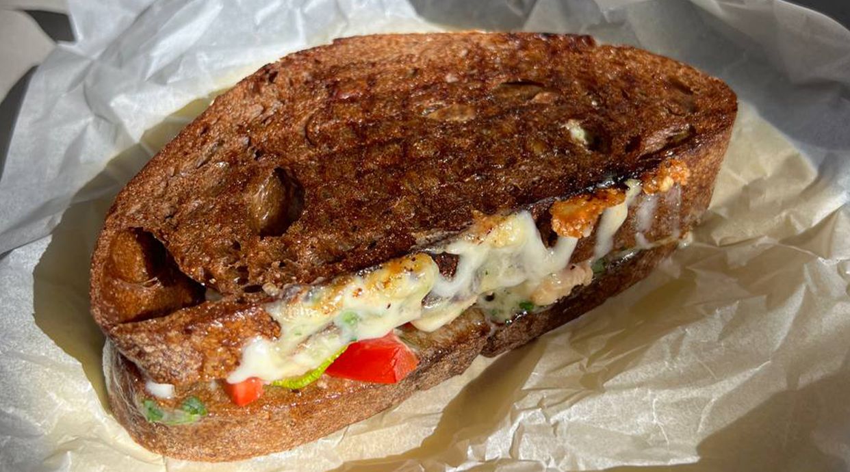 тунець, цибуля маринована, сир моцарела, сир чеддер, хліб світлий/темний
