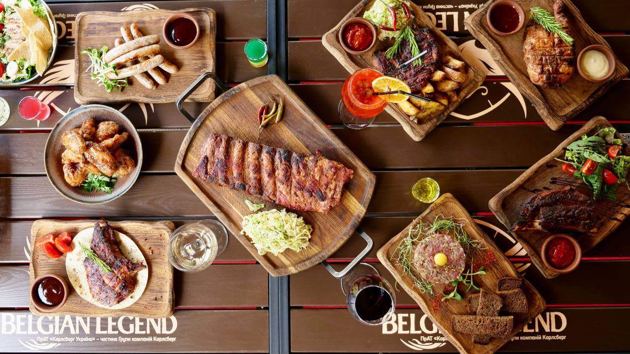 Ребра медові - 400 гр.Ребра BBQ - 400 гр.Ковбаси гриль - 250 гр.Шашлик свиний - 350 гр.Шашлик курячий - 350 гр.Курячі крила по-тайськи - 500 гр.Люля Кебаб - 360 гр.Картопля по-селянськи - 400 г.Овочі гриль - 500 г.Цибулеві кільця - 150 г.Соуси: BBQ - 100 гр. Аджика - 100 гр. Тайський - 100 гр. Чурек - 350 г.
