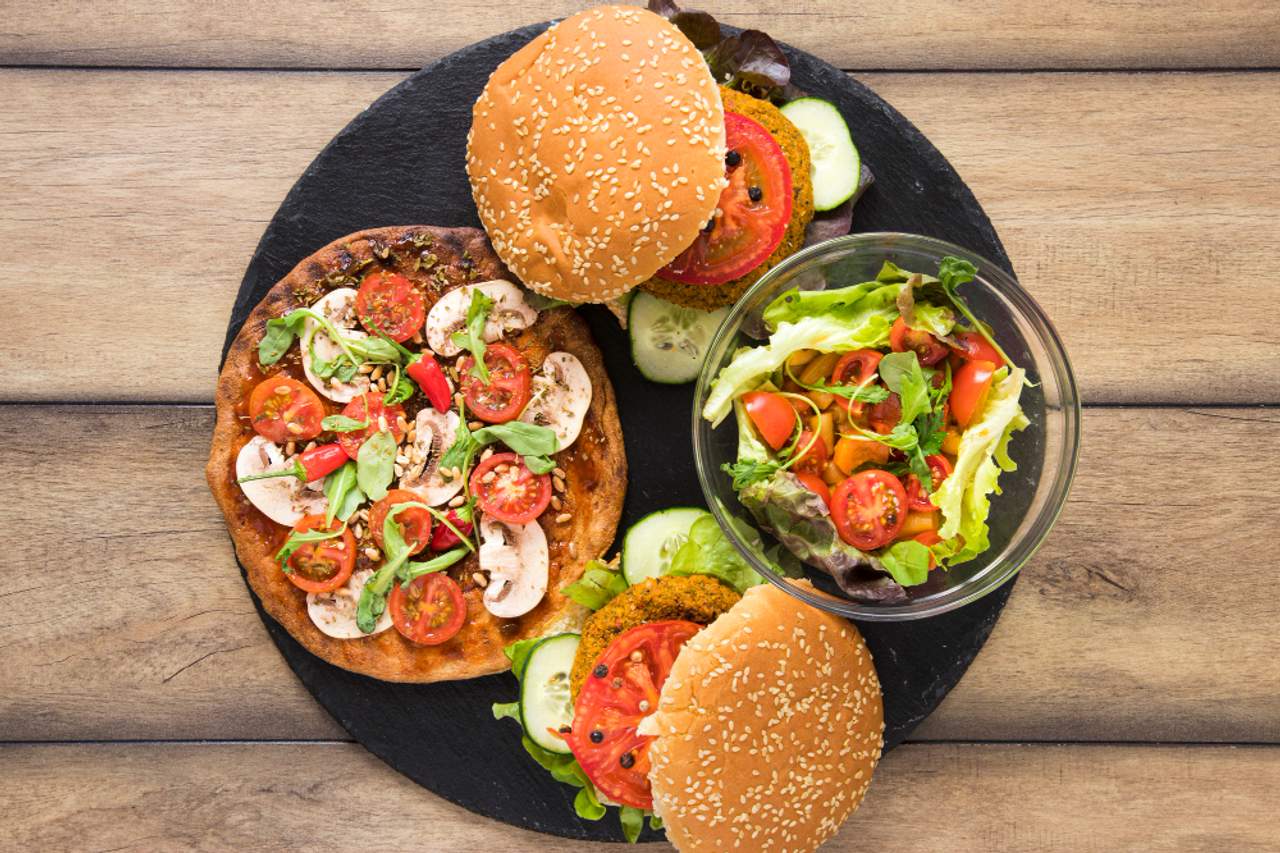Meso, salata, BBQ, luk, gljive, pomfrit