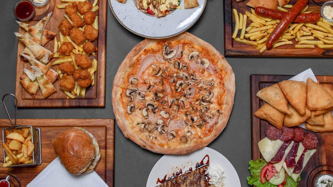 Kobasica, pohovani sir, onion rings, pileći nuggets, pomfrit, focaccia, BBQ sos