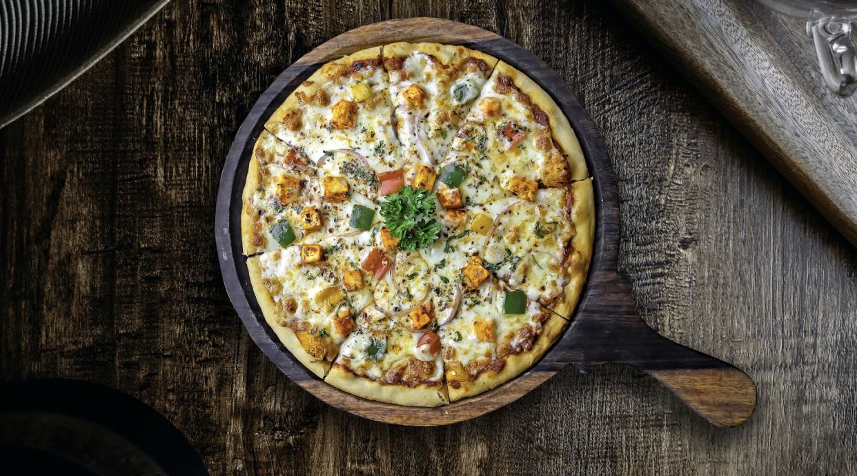 Доматен сос, пилешко месо, гъби, чушка, подправки, кашкавал