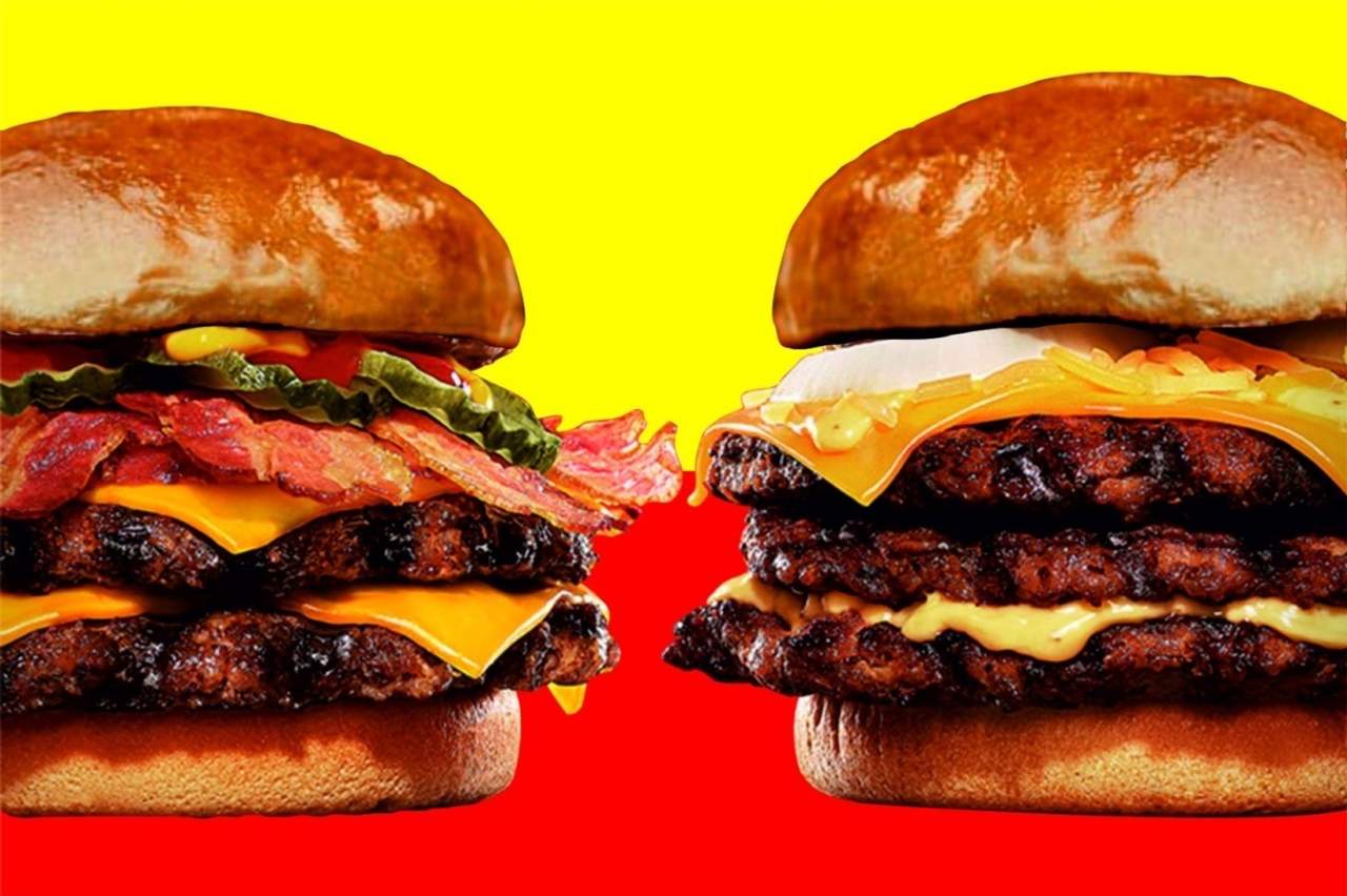 Голям двоен бургер с бекон, 2 чедъра, айсберг, кисели краставички, майонеза, бургер сос и кетчуп, събрани в бриош питка.