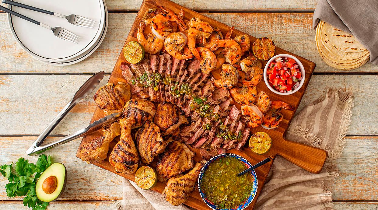 Домашна наденица, свински врат, пилешка пържола, пилешки крила, зеленчуци