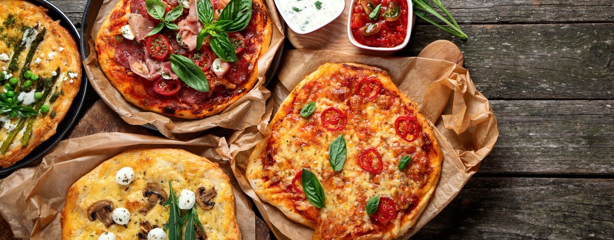 Доматено пюре, бекон, кашкавал, пушено пиле, царевица, топено сирене, риган