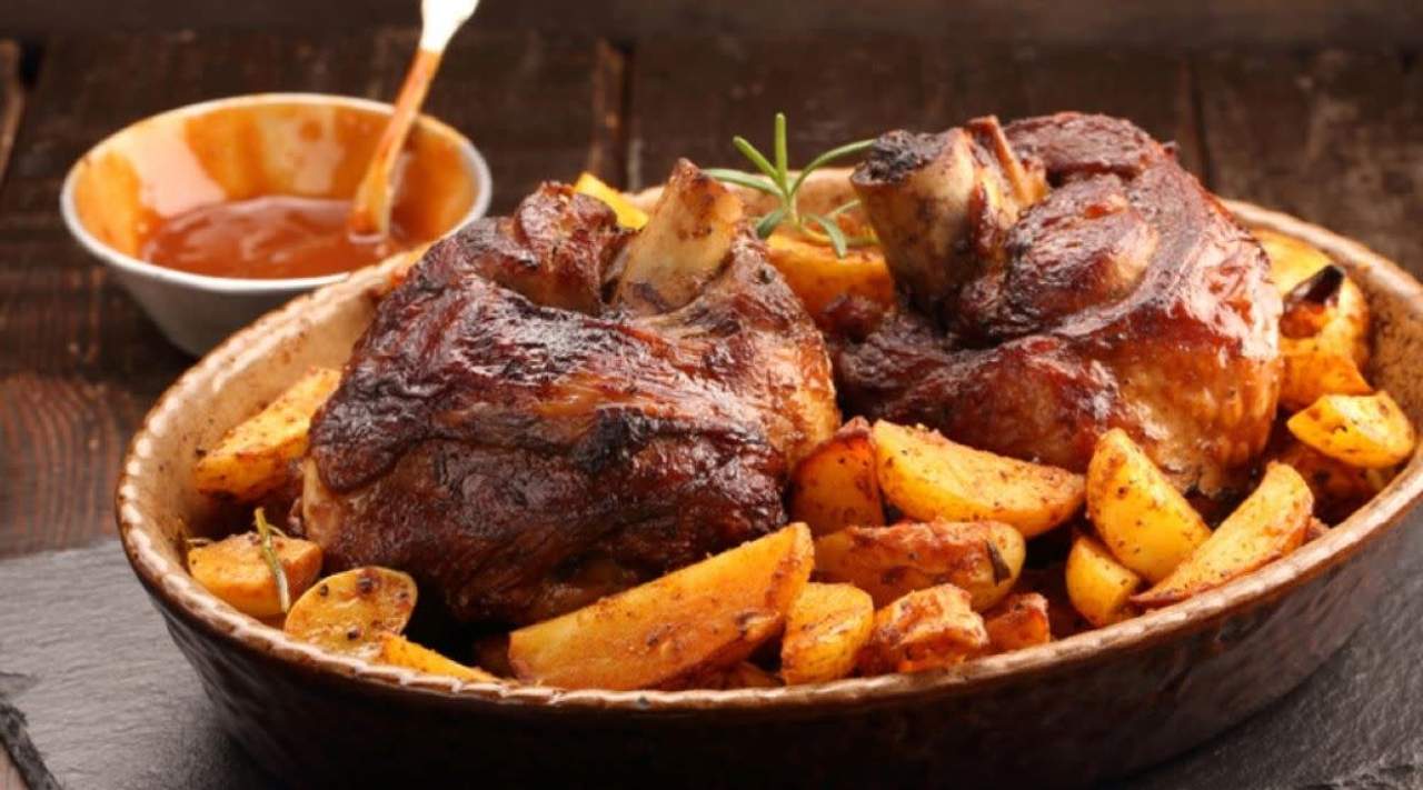 С пекнати картофки и сос, приготвят се за около 30 минути
