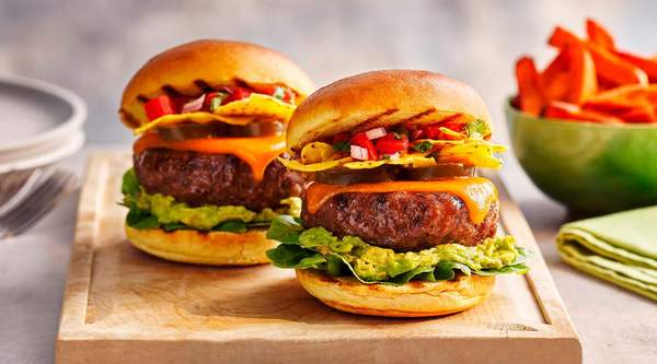 Ternera gallega 100%, doble queso cheddar, lechuga tomate, cebolla morada + patatas fritas crujientes al estilo belga con sal del Himalaya.