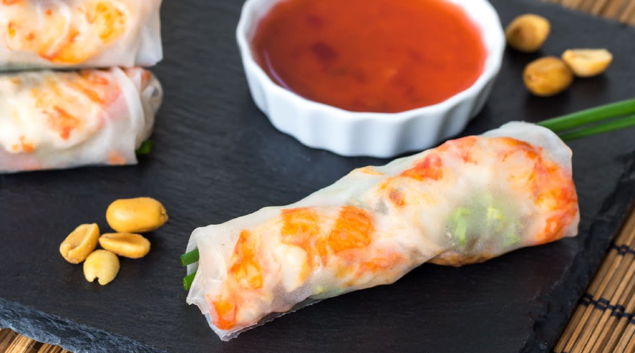 Rollos de primavera fritos chinos con jamón y queso