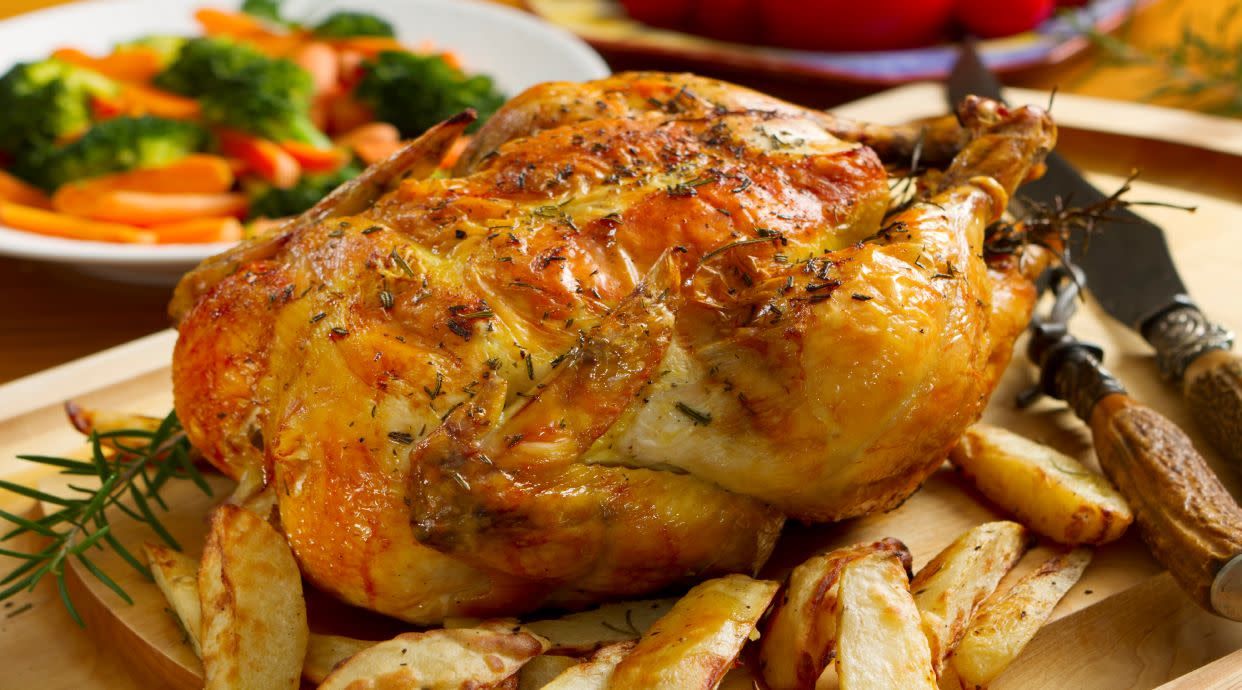 Menú De Pollo Al Horno Con Papas Fritas