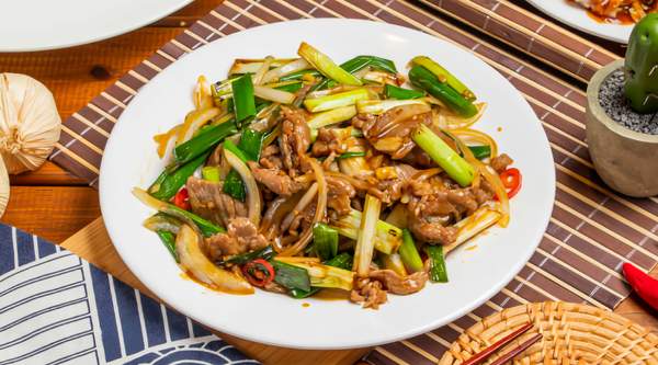 Ternera con el toque fresco y aromático del puerro, cebolla y jengibre