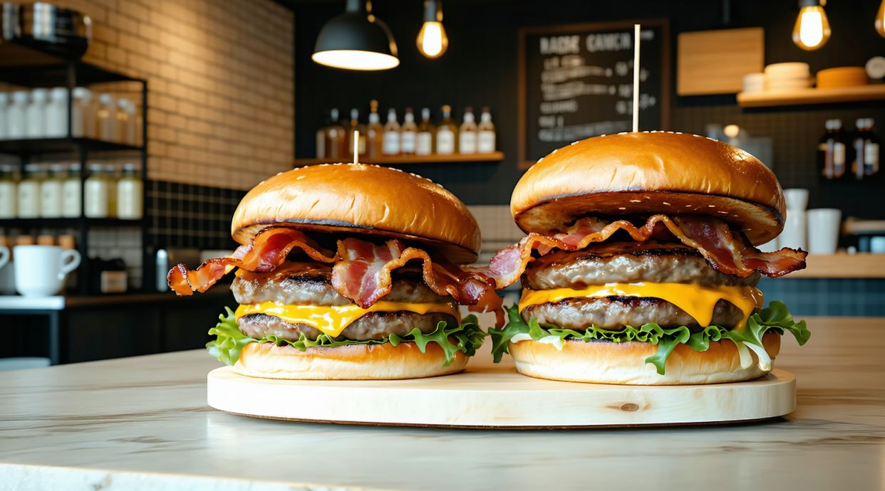 Sabrosa carne de kobe, lechuga, tomate, cebolla caramelizada, doble queso y mayonesa