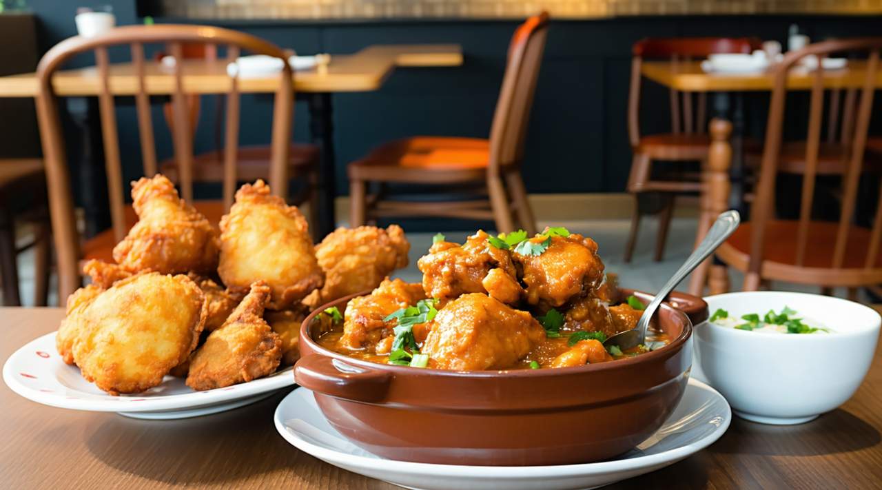 Crisp vegetable fritters, lightly spiced and golden-fried—comforting, crunchy, and utterly satisfying. (G)