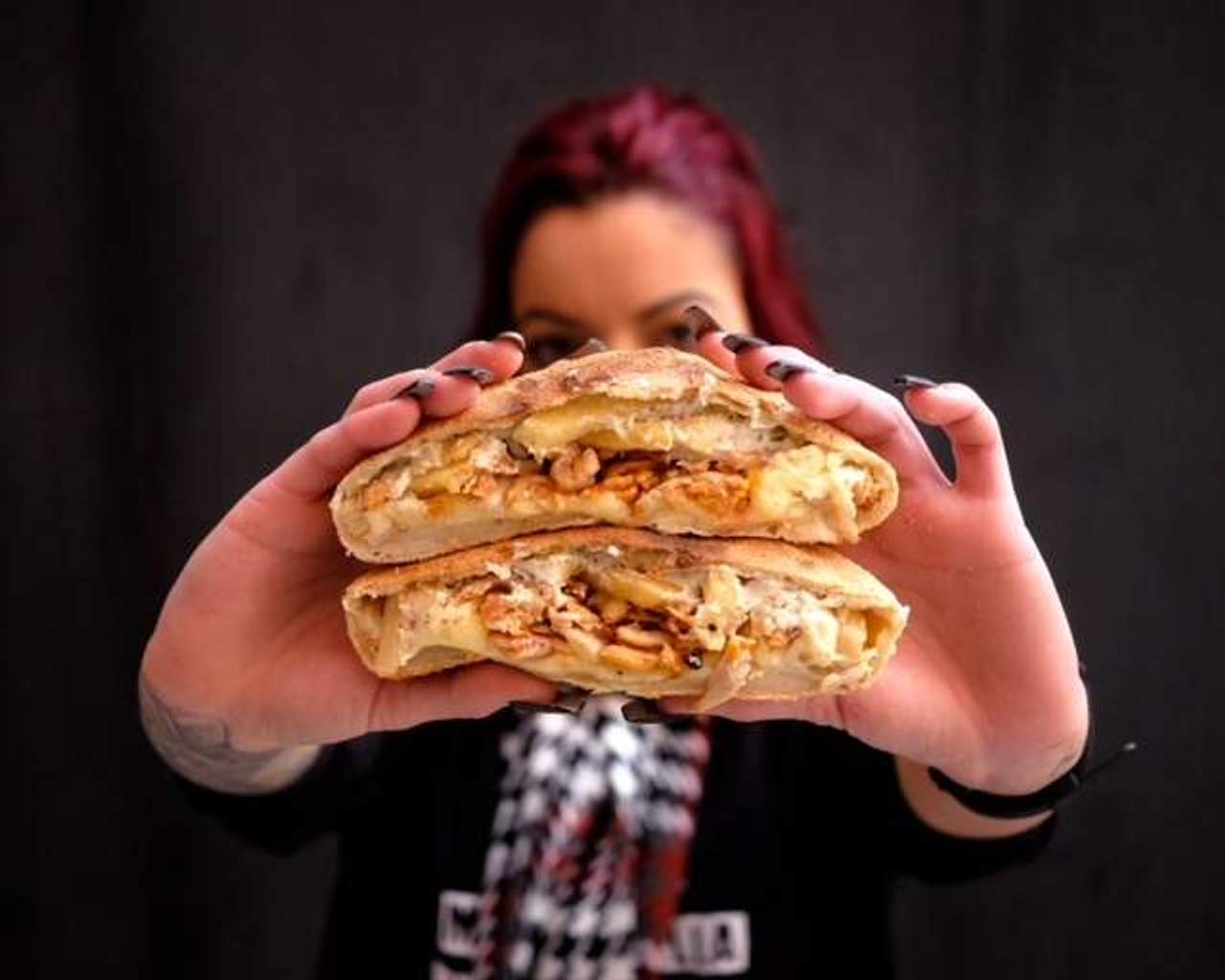 Una mezcla de queso fundido y pimientos con un rebozado crujiente