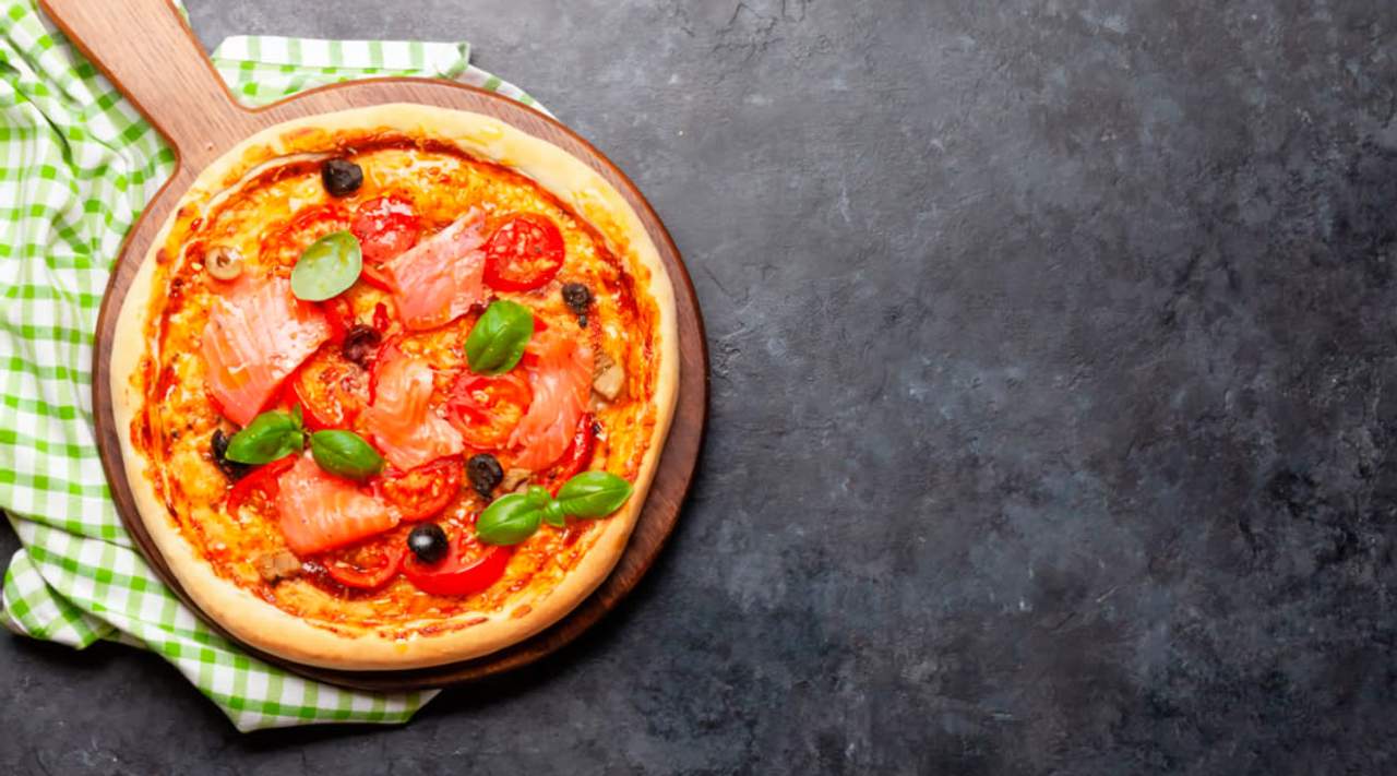 Masa fresca, salsa de carbonara, 100 % mozzarella, queso de cabra, jamon York y cebolla caramelizada