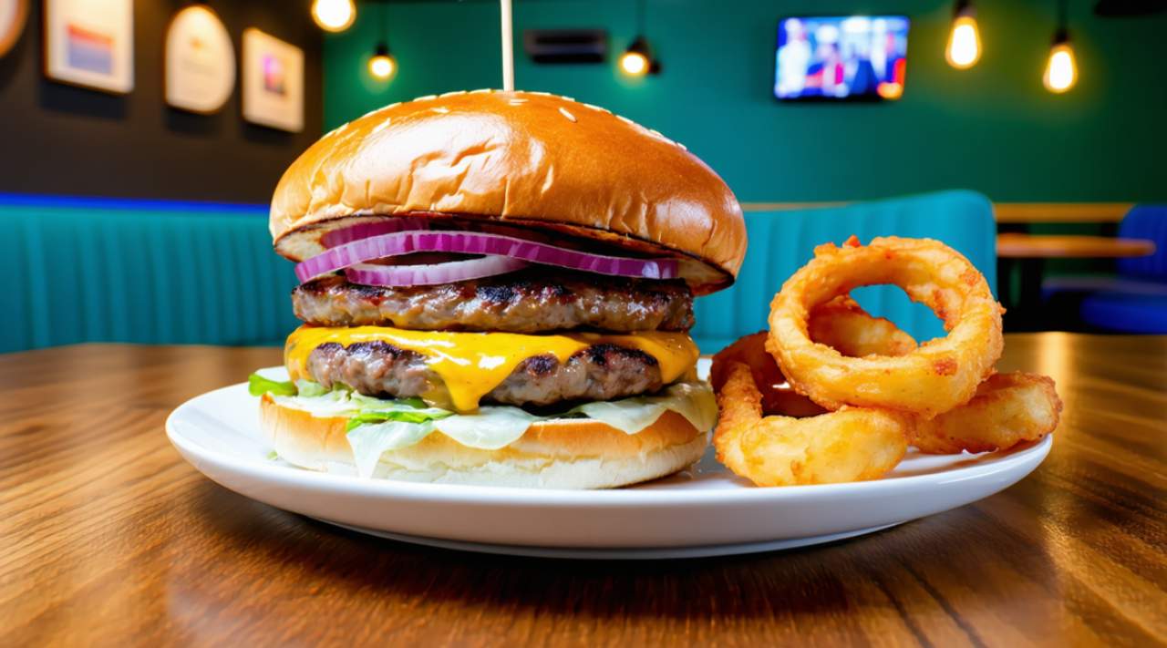 Queso cheddar, bacon, lechuga, tomate, cebolla,huevo y patatas fritas