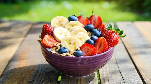 Açaí, granola, fresa, plátano, arándanos, yogurt, coco rallado y crema Koa