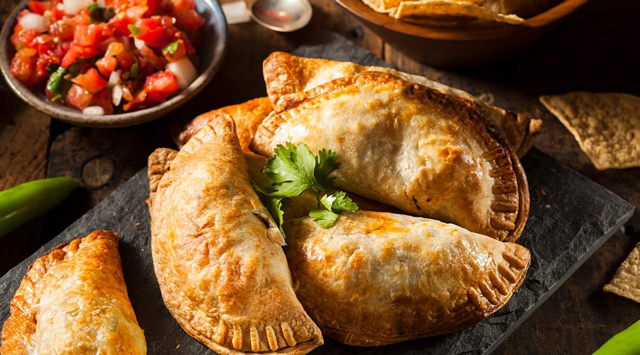 Una unidad de cada una orégano, pimiento con cebolla, espinaca, berenjena, carne con cebolla y de queso