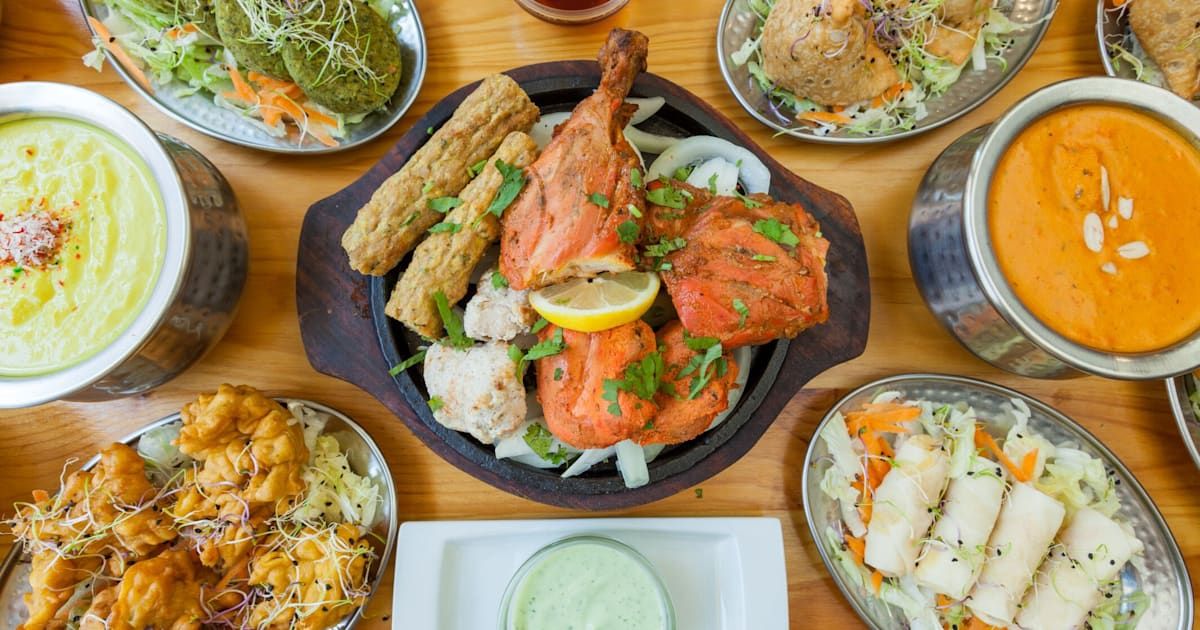 Pollo tandoori, pollo tikka, seekh kebab y malai tikka