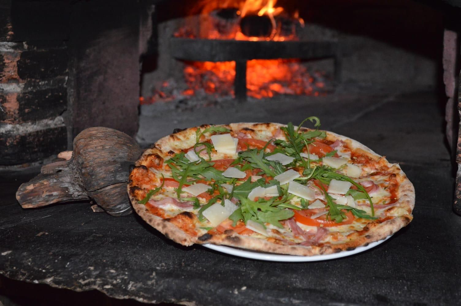 Tomate, mozzarella, jamón del país, parmesano y orégano