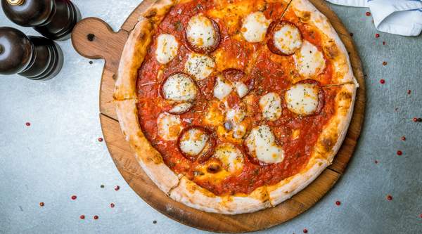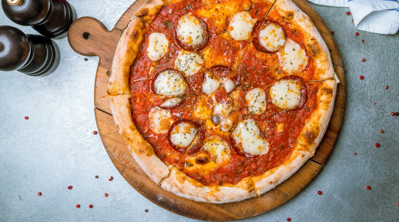 Tomate,queso, peperoni,carne de ternera,bacon,salsa vitorino
