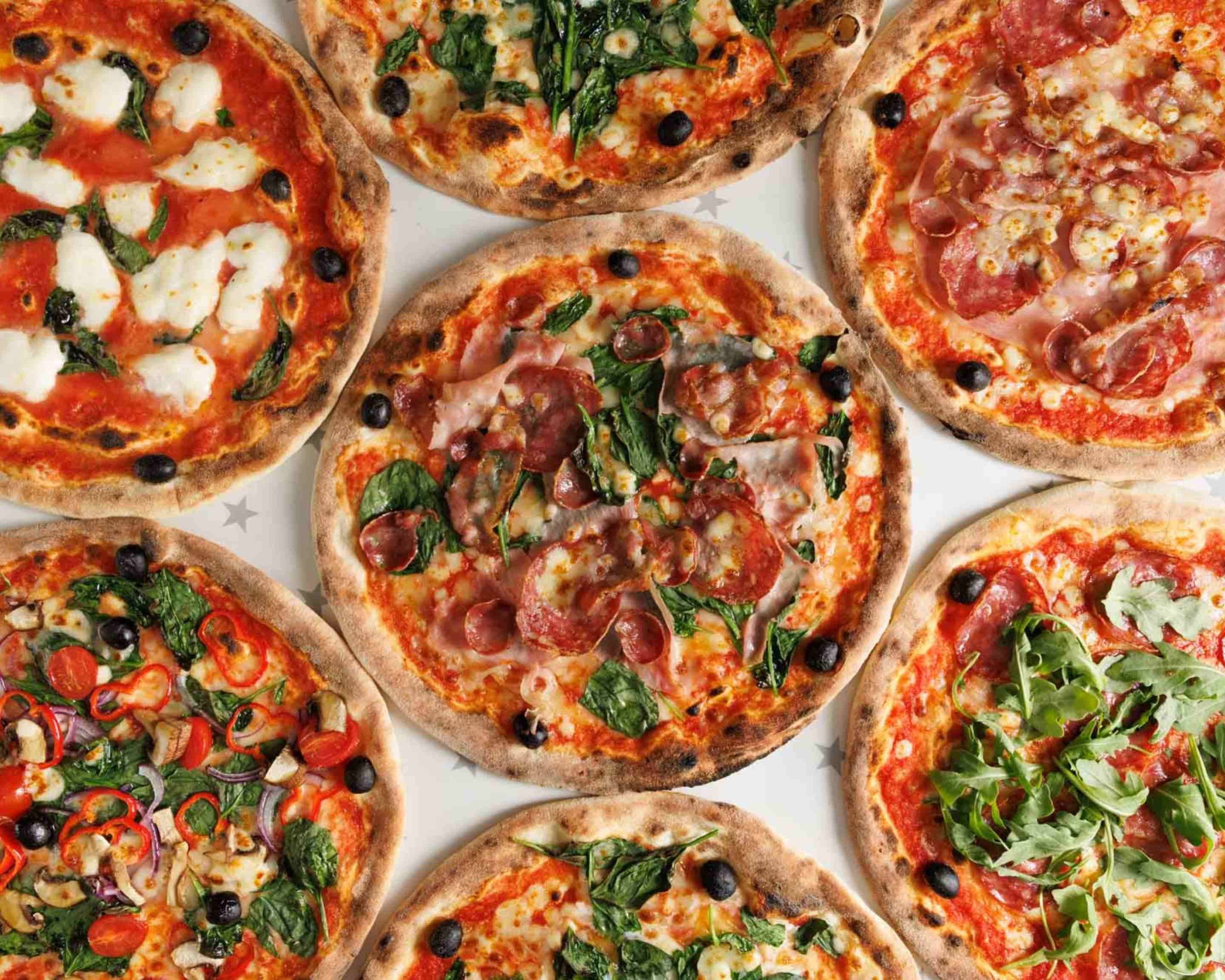 tomate, mozzarela, pimiento verde, pimiento rojo, cebolla y tomates cherry