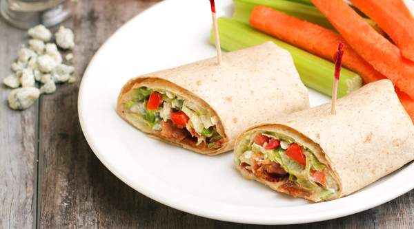 Tortilla de trigo con pollo asado, lechuga romana, tomate, cebolla crunchy, aguacate y mayo chipotle.