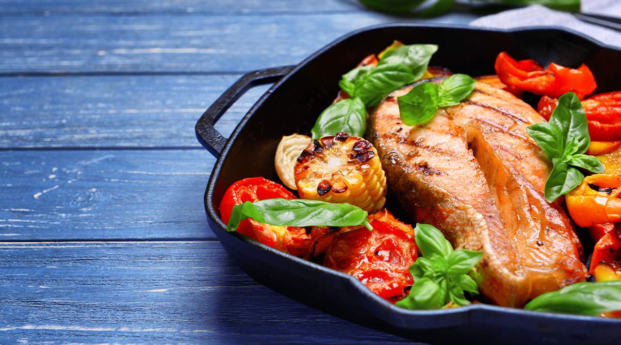 Salmón a la plancha con verduras salteadas