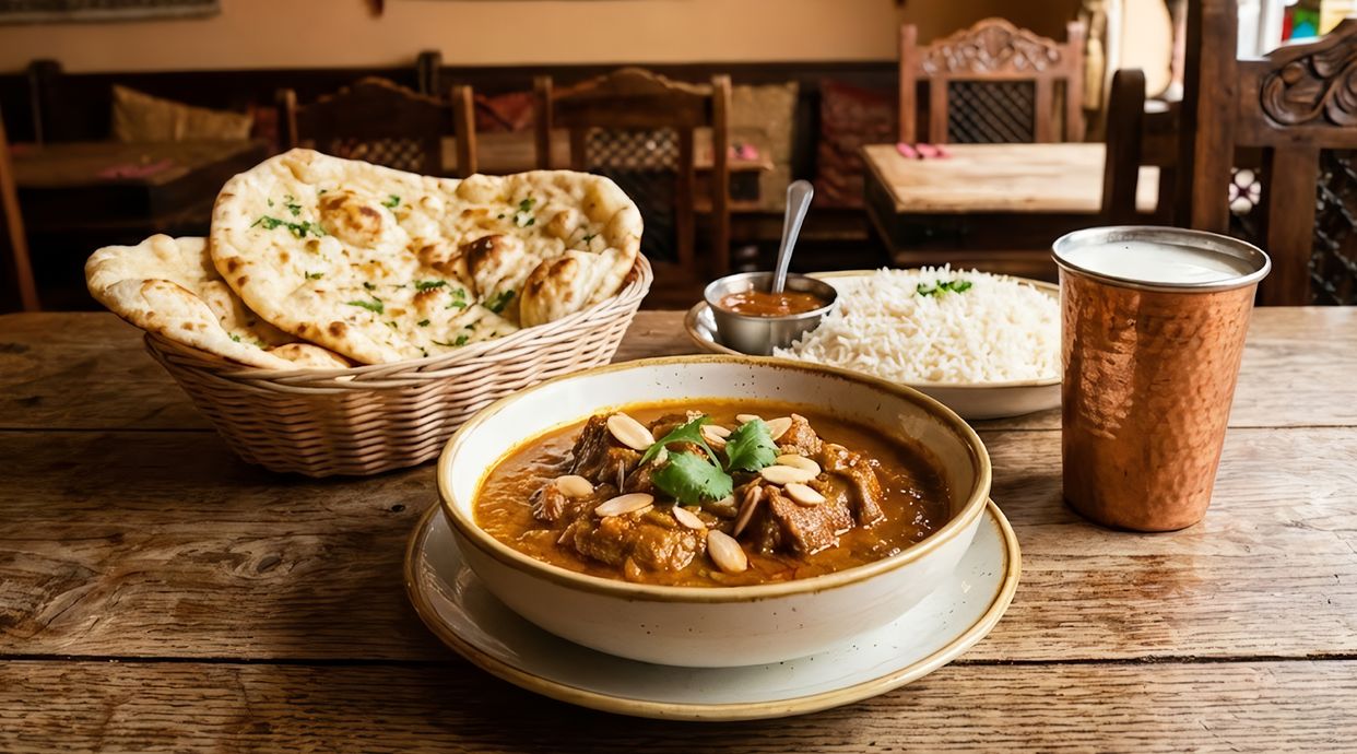 Curry aromático y sabroso con tierno cordero cocinado en una salsa de menta y yogur