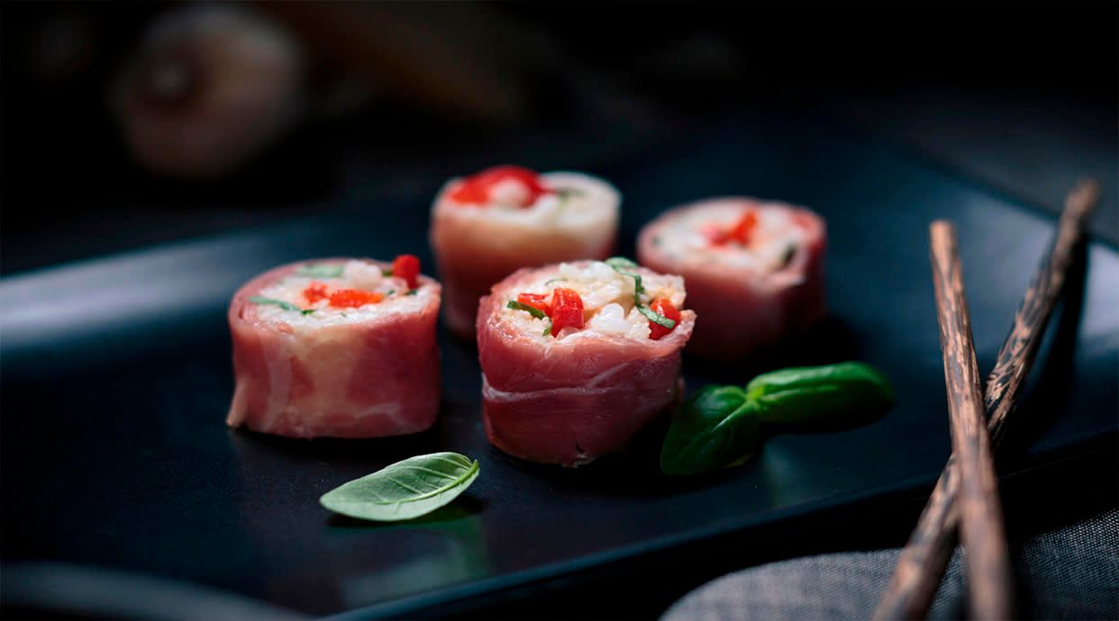 Tempurizado de atún foie y aguacate, con mermelada de higos y cebolla crujiente
