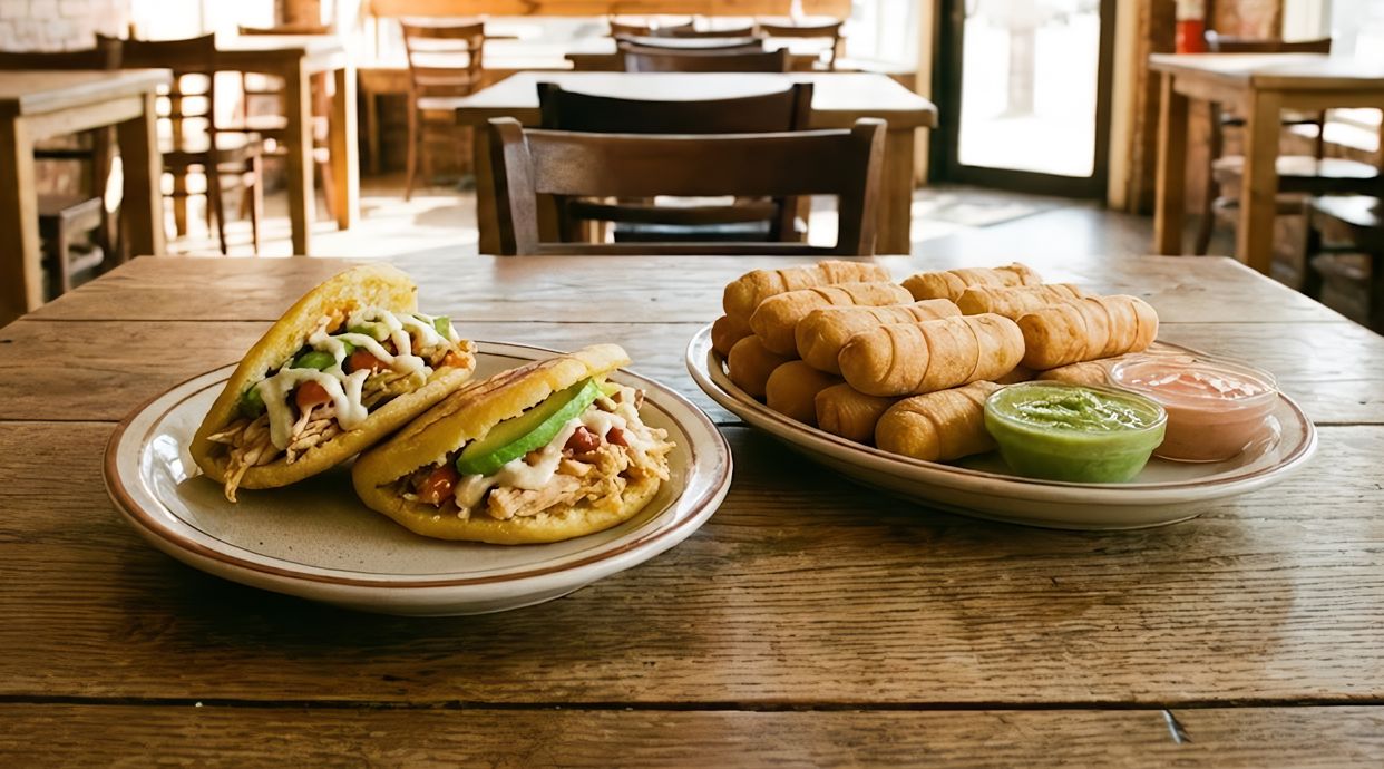 Arepa rellena de pollo desmenuzado y queso amarillo