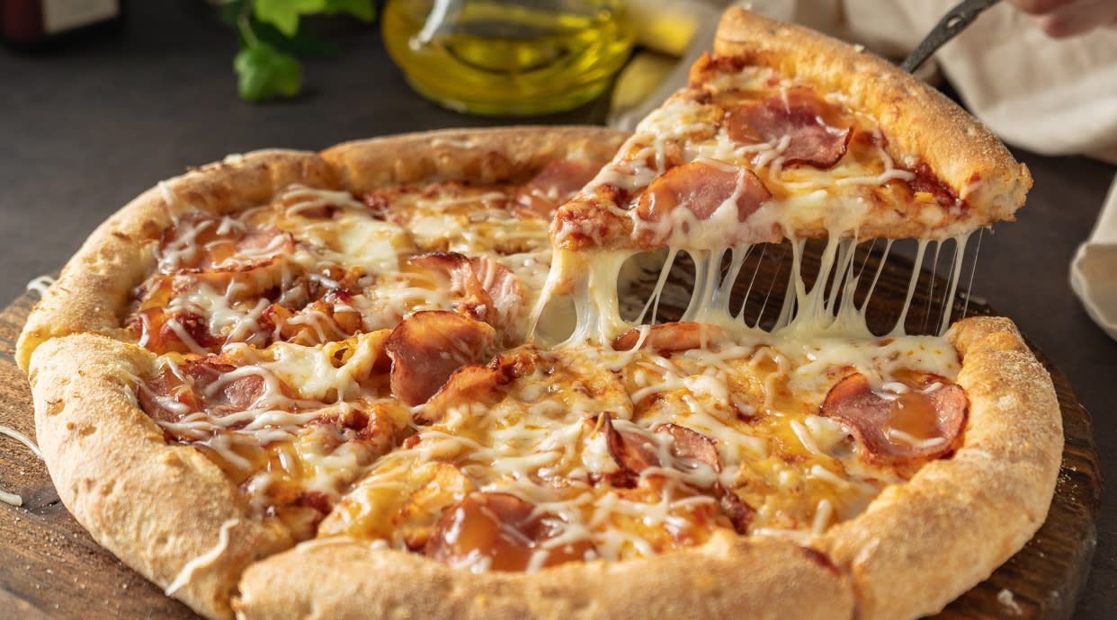 Para los amantes de la carne. Base de tomate, guanciale, pollo y prosciutto se complementan con queso mozzarella derretido
