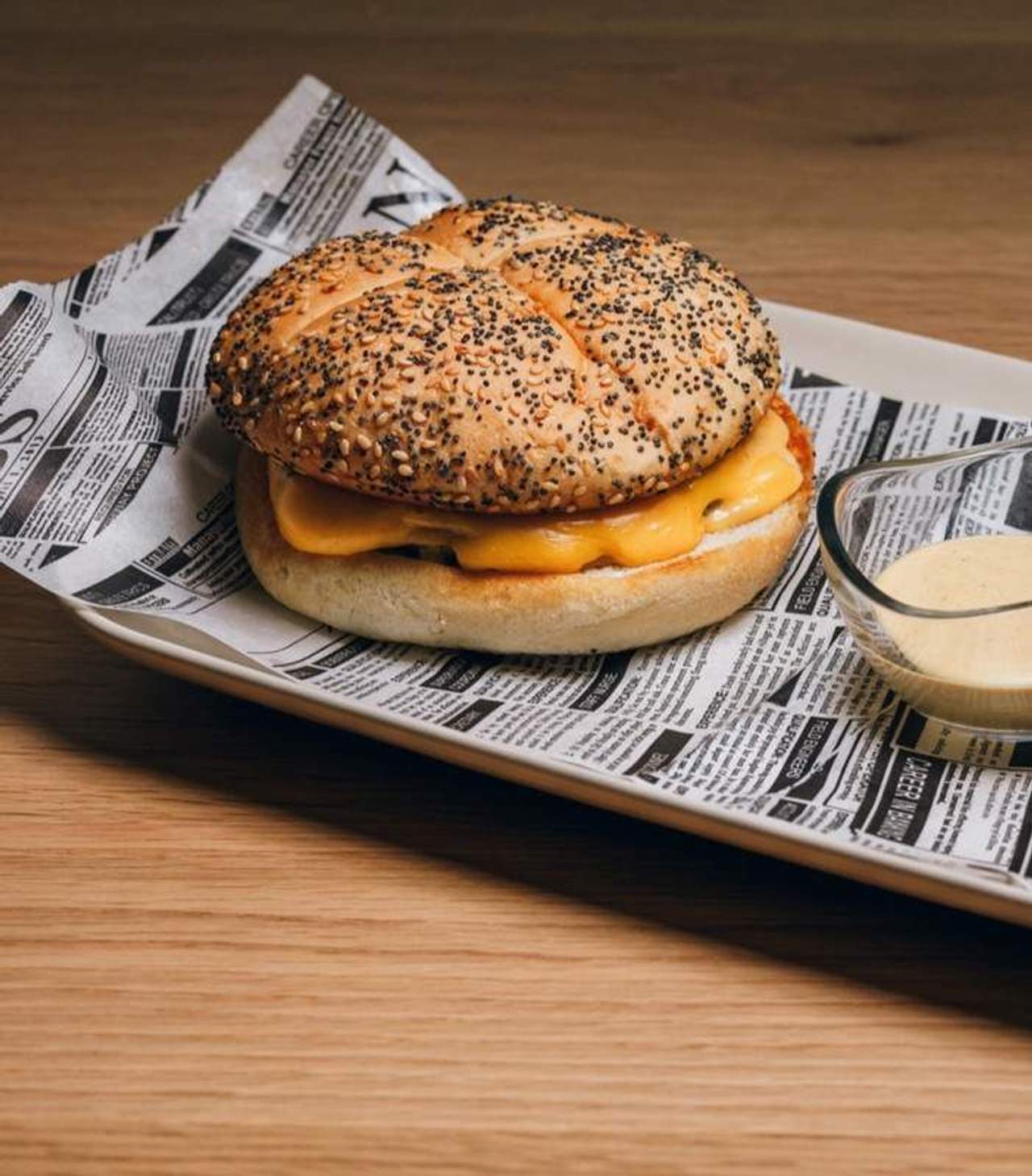 Carne de hamburguesa, queso, pepinillos, salsa especial y papa planchada