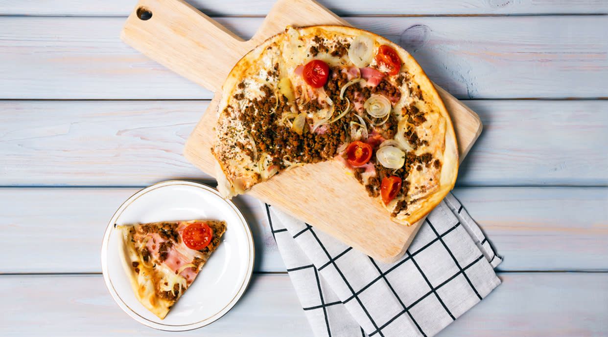 Tomate, queso, carne picada, salami, cebolla y salsa barbacoa