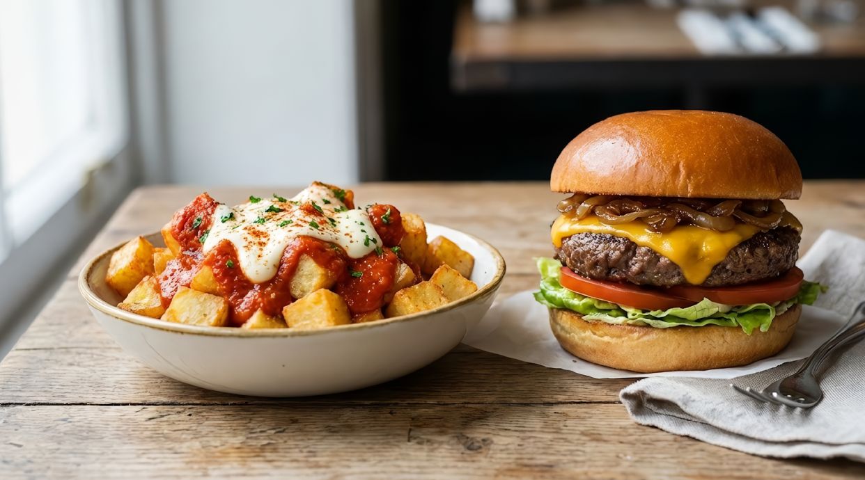 Patatas cortadas en dados y fritas. Acompañadas de salsa brava picante