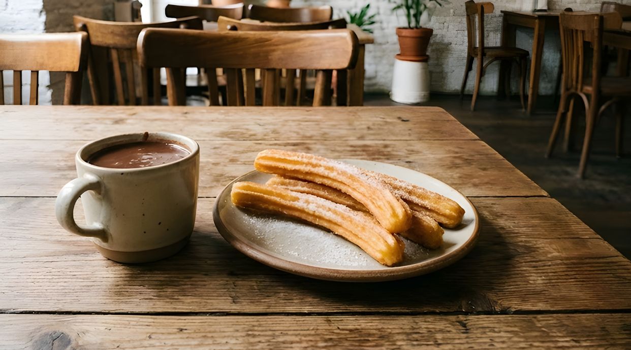 Dotze xurros acabats de fer amb mig litre de xocolata desfeta, intensa i suau, feta amb llet.