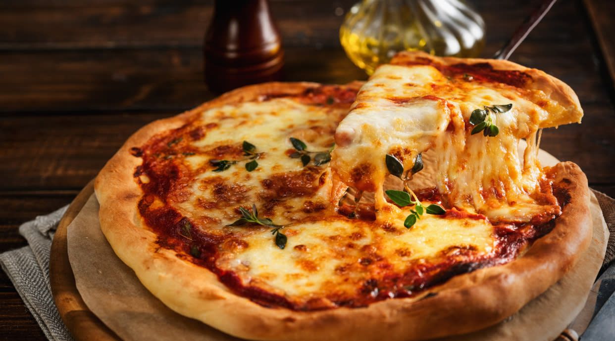 Tomate, queso, jamón cocido, champiñón, chorizo, gambas, aceitunas