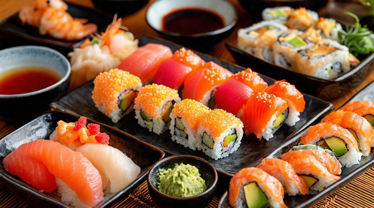 Maki roll (12 uds.), nigiri (12 uds.) y sashimi (12 uds.)