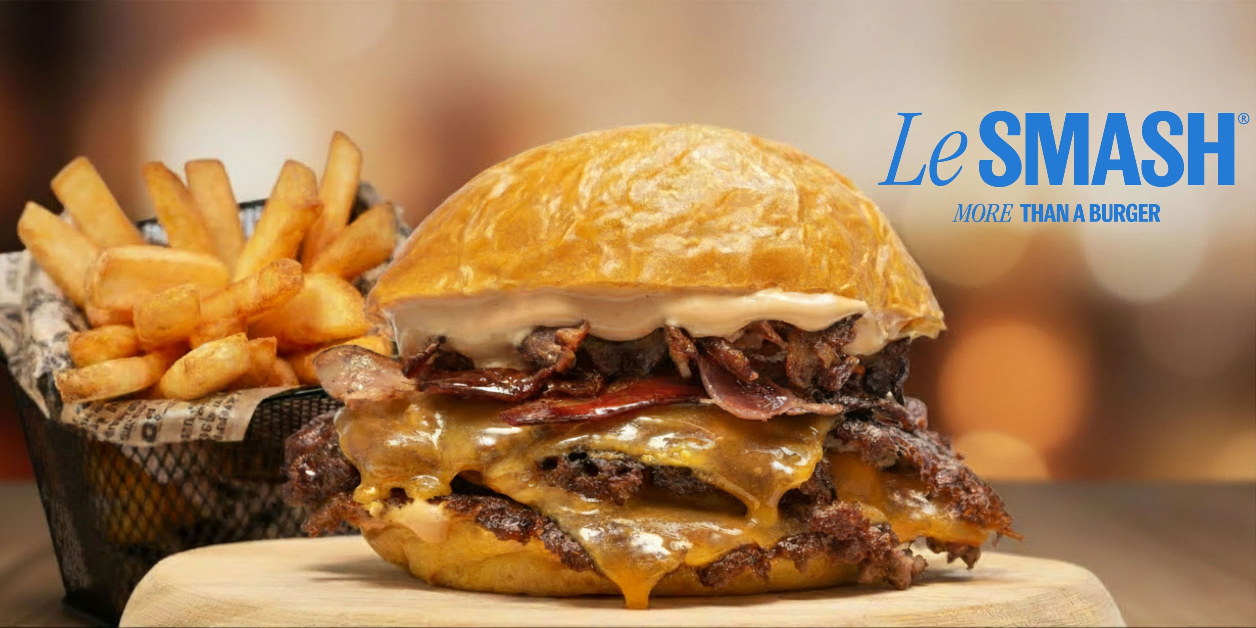 La más apuesta de todas nuestras burgers. Pan brioche, doble patty de ternera rubia gallega, doble queso americano, bacon ahumado, cebolla a la plancha y salsa BBQ.Alérgenos: Contiene todos los alérgenos.