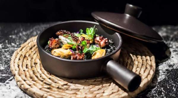 Pulpo braseado, cremoso de patata y mojo rojo.