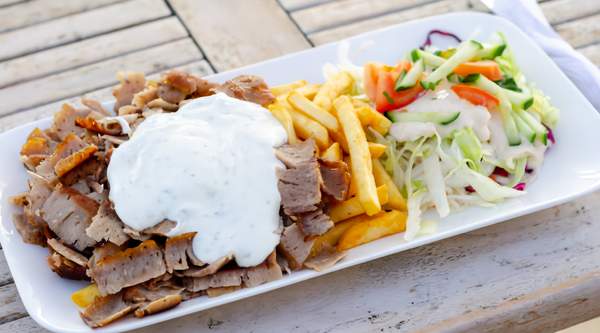 Carne, ensalada y salsa kebab