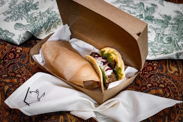 იმერული კუპატი შერეული ხორცით, თხელი პური, პესტო, , მწნილის სალათი