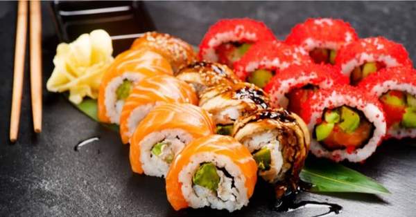 ბრინჯი, ნორი, კიტრი, ავოკადო,კრაბი, ხიზილალა ტობიკო