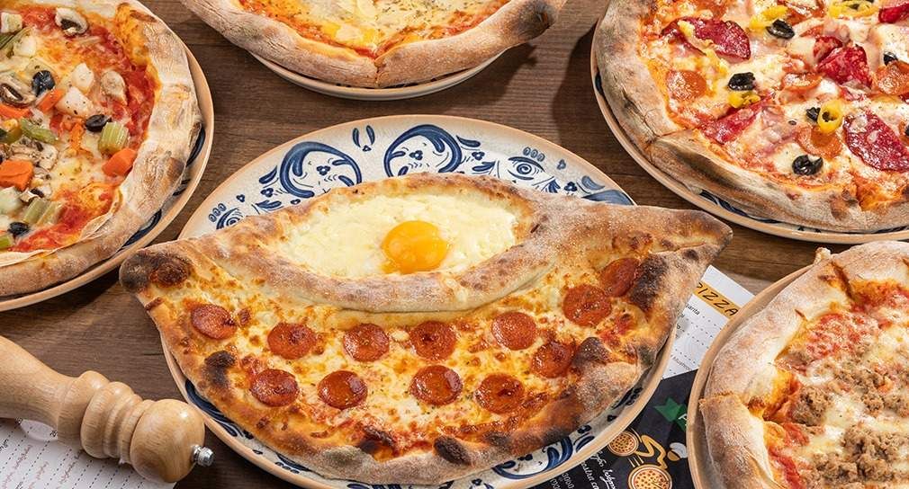 ტომატის სოუსი, პეპერონი, კვერცხი, ყველი, მოცარელა, ორეგანო.