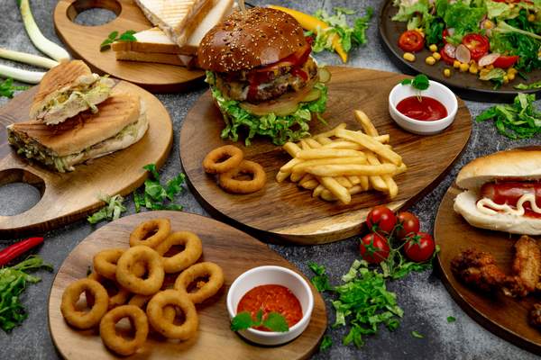 100 % goveđa pljeskavica 300g, cheddar, gouda, gorgonzola, pečena paprika, krastavci, zelena salata, rajčica, ketchup, majoneza