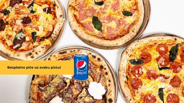Tijesto, pasirana rajčica, mozzarella Fior di latte, paprika, buđola, crveni luk, kukuruz, origano