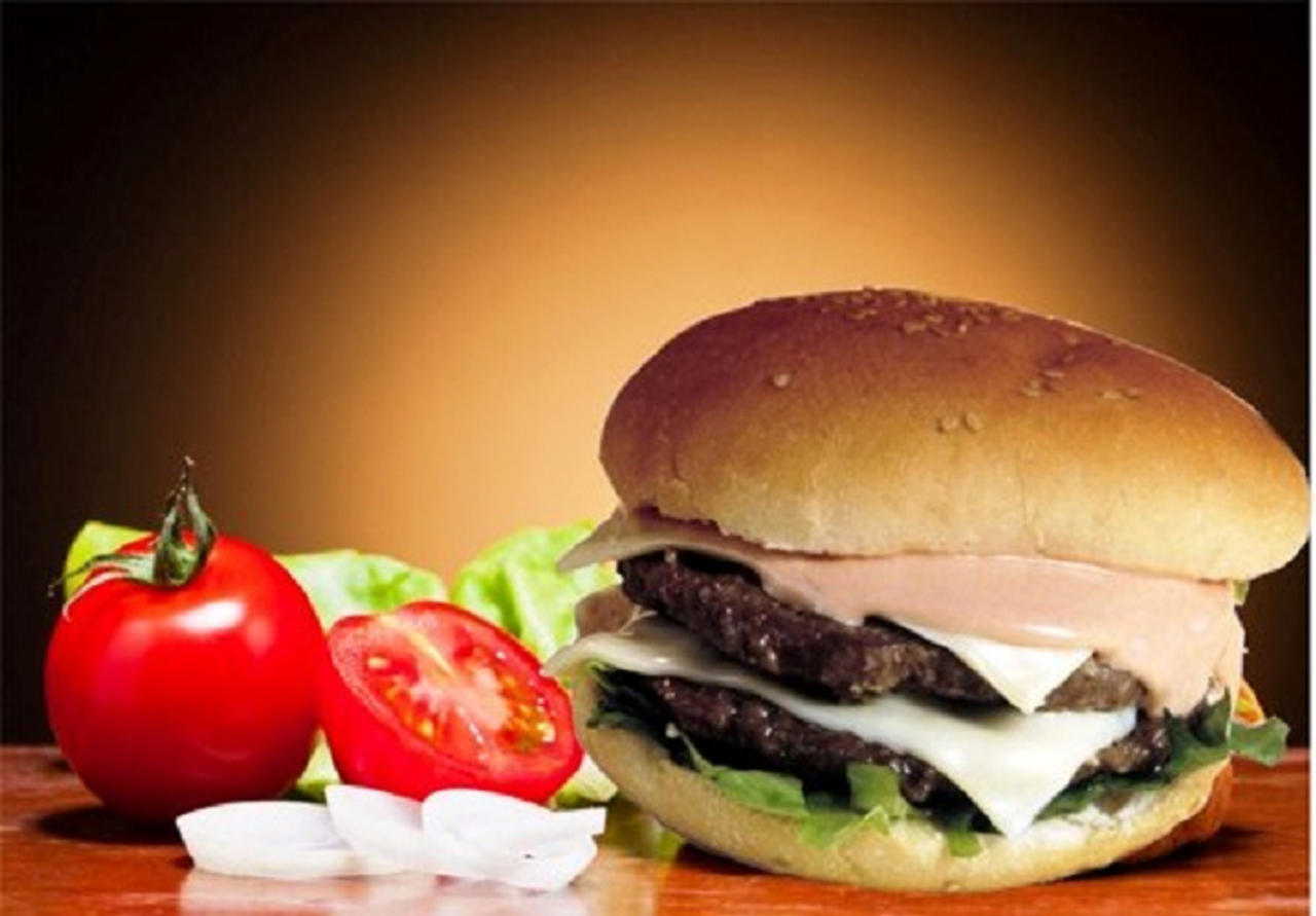 Doppio hamburger di scottona, formaggio fuso, lattuga, pomodoro, cetrioli e salsa rosa